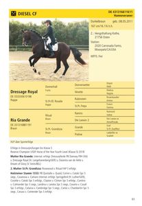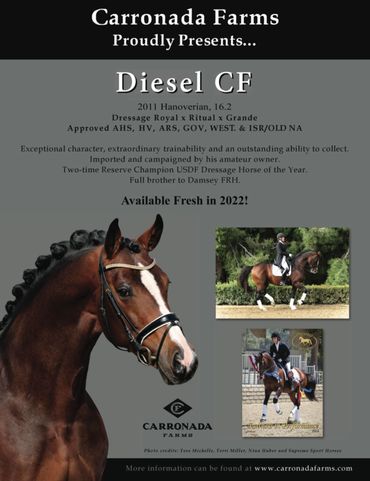Diesel is a full brother to the premium Hanoverian Grand Prix stallion Damsey FRH, who has been ranked as high as 4th in the FEI Dressage World Rankings and on the German A-Squad with Helen Langehanenberg.