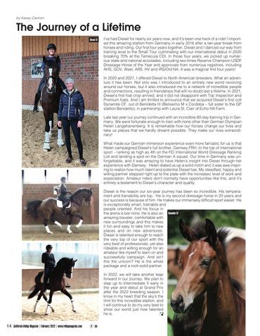 In sport, Diesel has been very competitive. He has been Champion and Reserve Champion for multiple state and national titles in the seven years that he has been in the US. In 2017 and 2018, he was Reserve Champion USDF Dressage Horse of the Year (and Champion AA combination in the US) for Second Level and then again for Fourth Level. In 2019, he earned scores up to 74.5% at PSG. And in 2020, along with Kasey, he made his international debut in the Small Tour and broke the 70% barrier at their very first CDI in Temecula, CA. Diesel and Kasey qualified 6th (and notably the only amateur combination in the top 15) for the Intermediare 1 Championships in Chicago at the Festival of Champions, however the pair decided to forego the Championships in order to make an even bigger trip at the end of 2021. And in December of 2021, Diesel and Kasey returned from an amazing two months of training in Germany with Olympian Helen Langehanenberg. Please see the Germany 2021 page for a recount of this amazing experience!