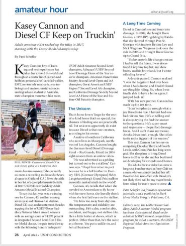 Now beginning his Grand Prix career, elite stallion Diesel CF is a talented Hanoverian stallion that has been successfully trained and competed from Training Level to Grand Prix by amateur owner/rider Kasey Cannon.